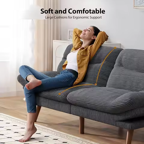 11 reviews for 66 Inch Modern Corduroy Futon Convertible Sofa Bed Recliner Sleeper with Adjustable Backrest & Armrests, Comfort Home Furniture,