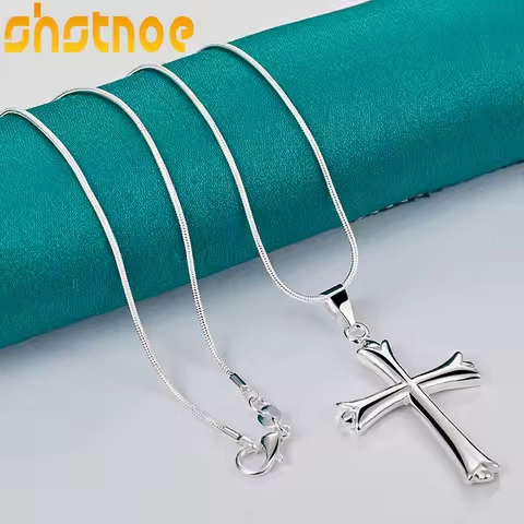 925 Sterling Silver 16-30 Inch Chain Cross Pendant Necklace For Women Engagement Wedding Birthday Gift Fashion Charm Jewelry