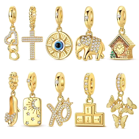 925 Sterling Silver Charms Beads Golden Cross Elephant Butterfly Pendant Fit Women Original Bracelet DIY Christmas Gift