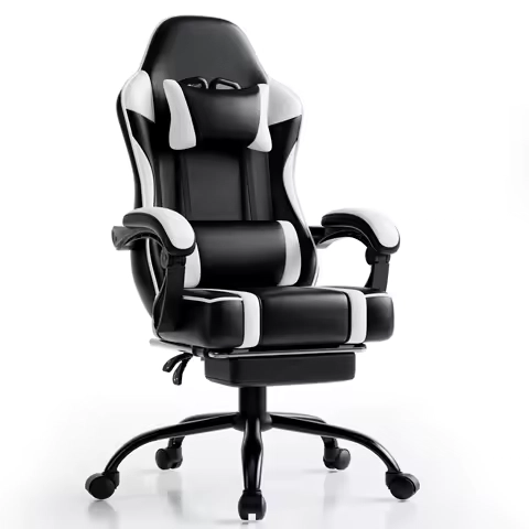 Ergonomic Gaming Chair with Footrest, High-Back Video Game Chair Computer Chair, Office Chair with Headrest and Lumbar, PU Leath